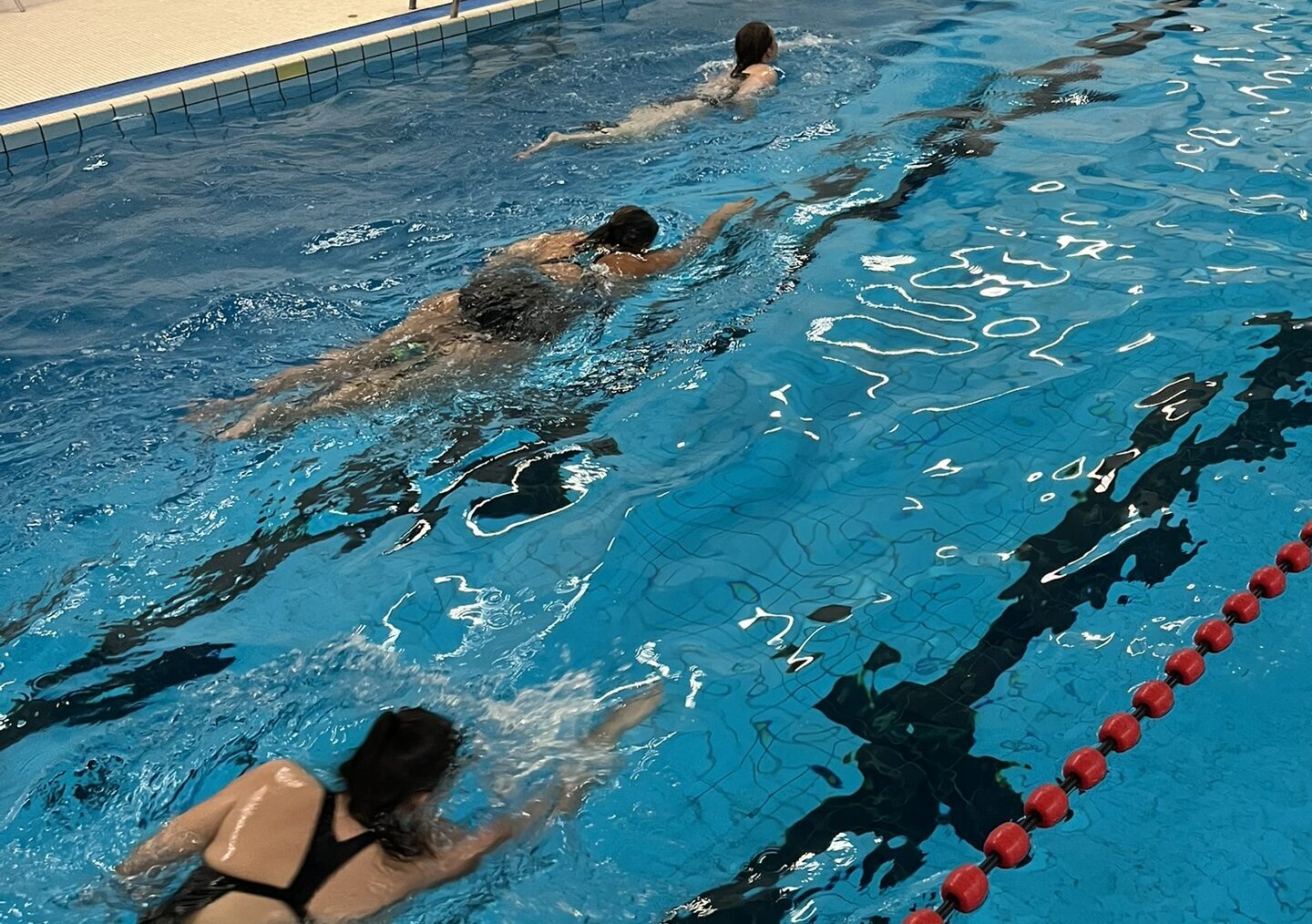 Tijdens het sociaal banenzwemmen ligt het tempo iets later en is ruimte om te kletsen met de andere.